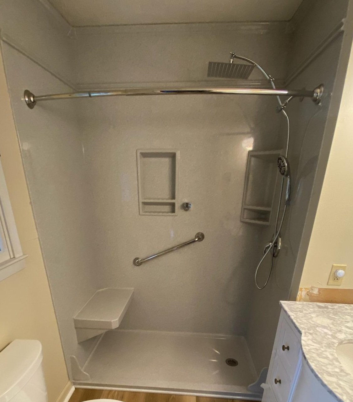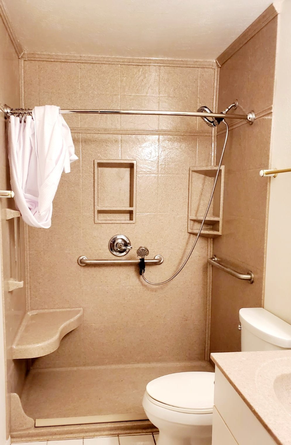 Includes new shower, countertop, toilet and new flooring!